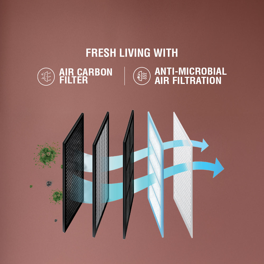 - Fresh & Hygienic Air – The anti-microbial self-cleaning feature prevents mold and bacteria buildup, ensuring clean and healthy air circulation.