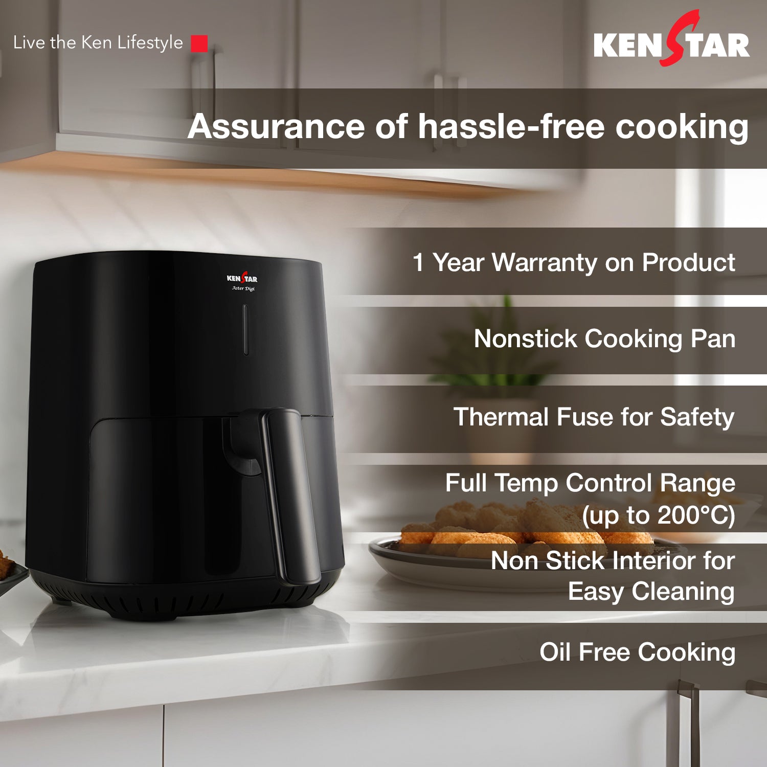 This versatile appliance features a powerful 1200W heating element and a spacious 4.2L pan capacity, perfect for a variety of cooking needs. Its non-stick interior ensures effortless cleaning, while the digital display with touch control allows for precise temperature adjustments up to 200ºC. With 8 cooking presets, it simplifies meal preparation for various dishes. The non-stick cooking pan enhances convenience and ease, and the auto cut-off feature adds safety by preventing overheating. Plus, it comes with a 1-year warranty on the product, providing peace of mind and reliable performance.