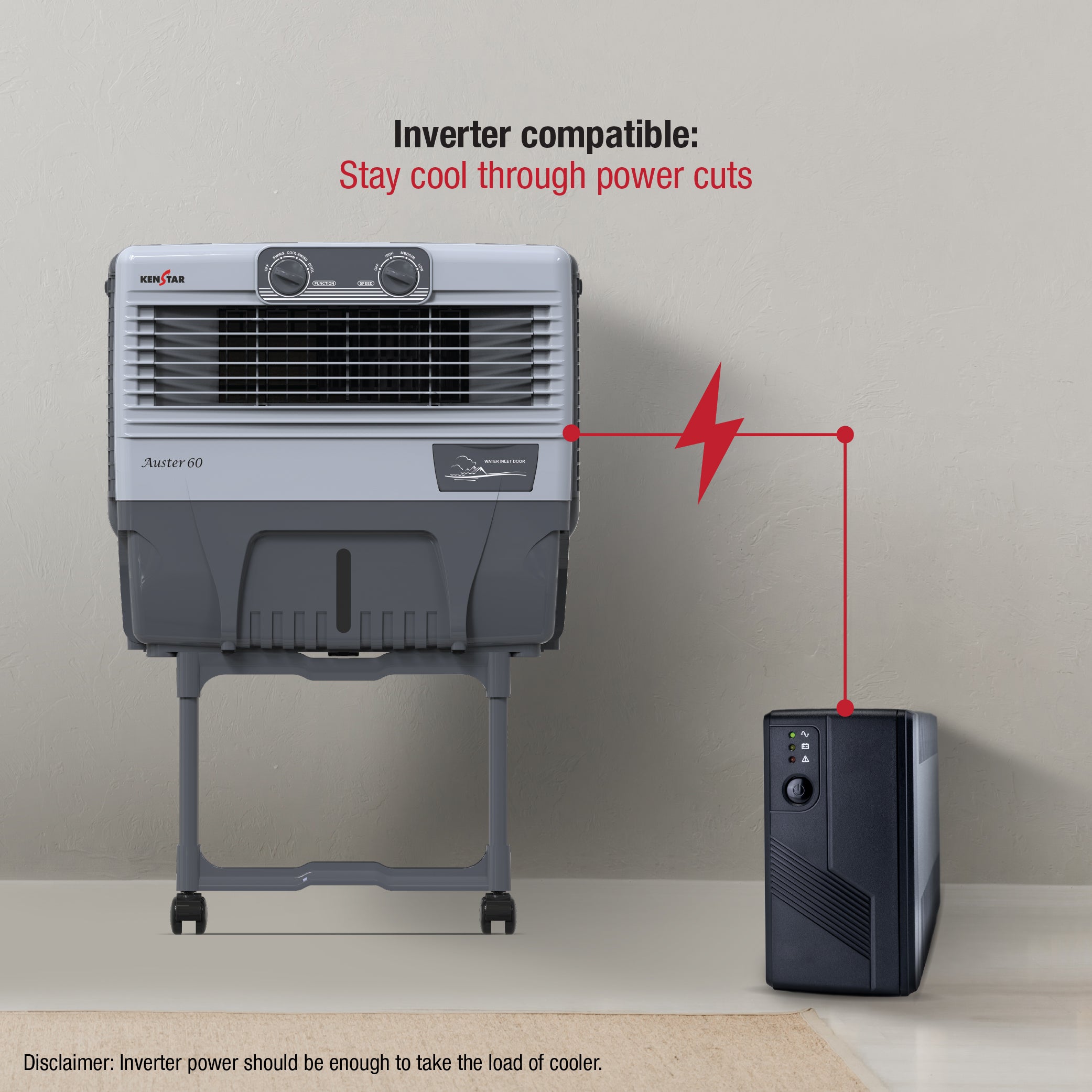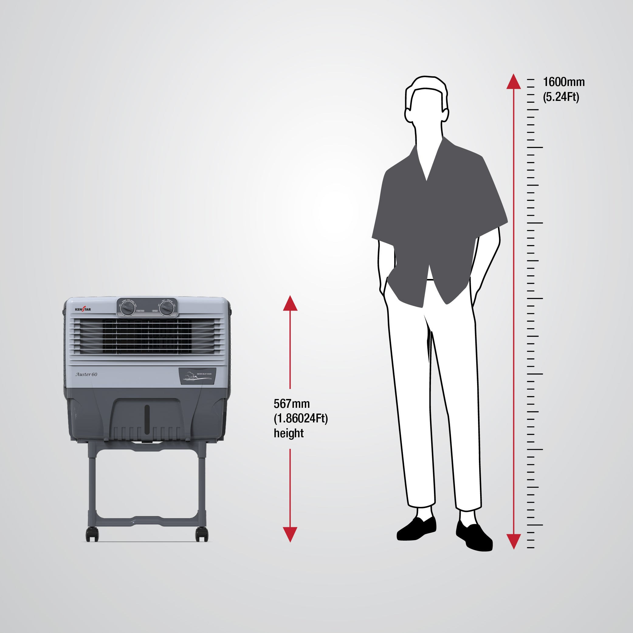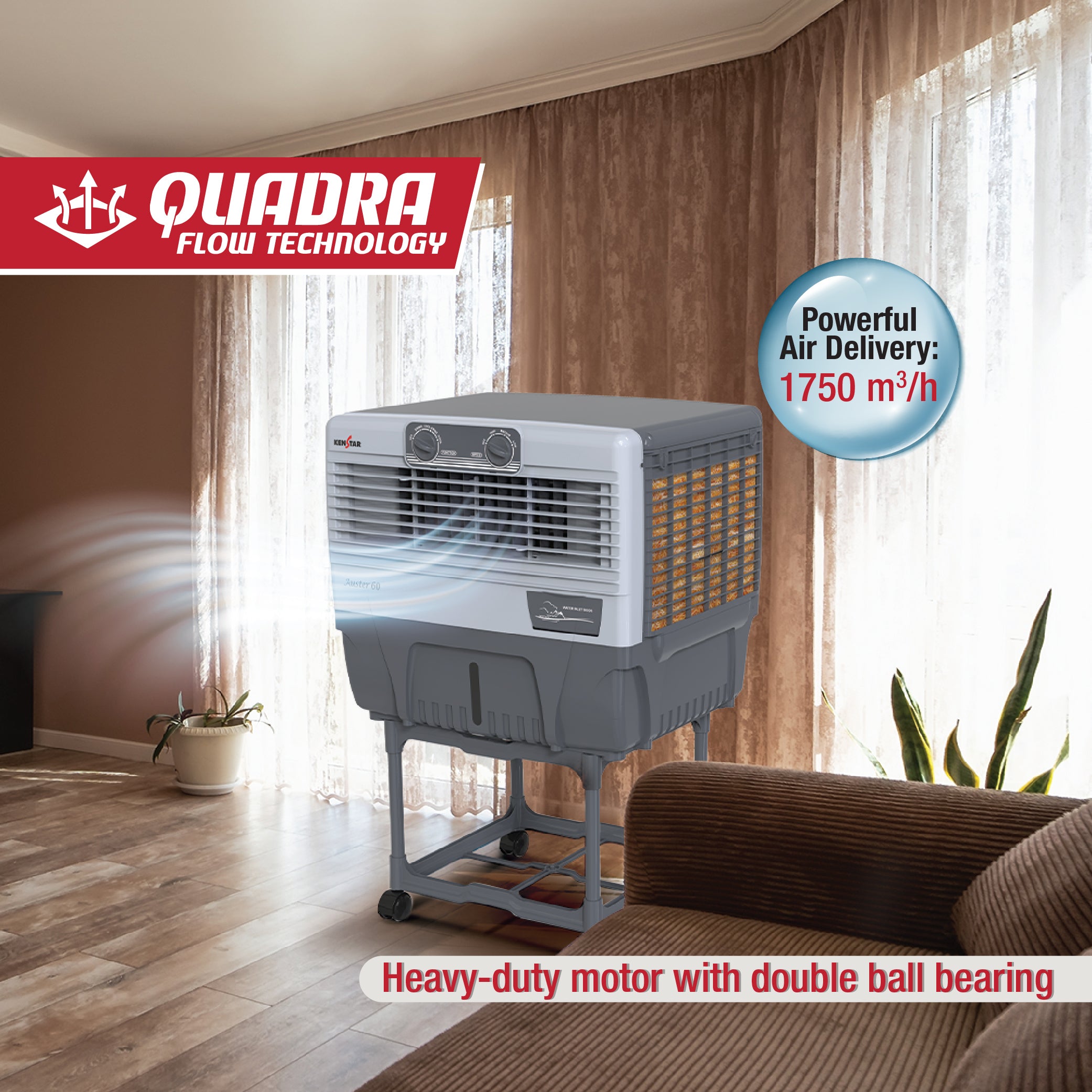 - The AUSTER 60 air cooler features a 60-litre water tank, ensuring extended cooling performance without frequent refills.