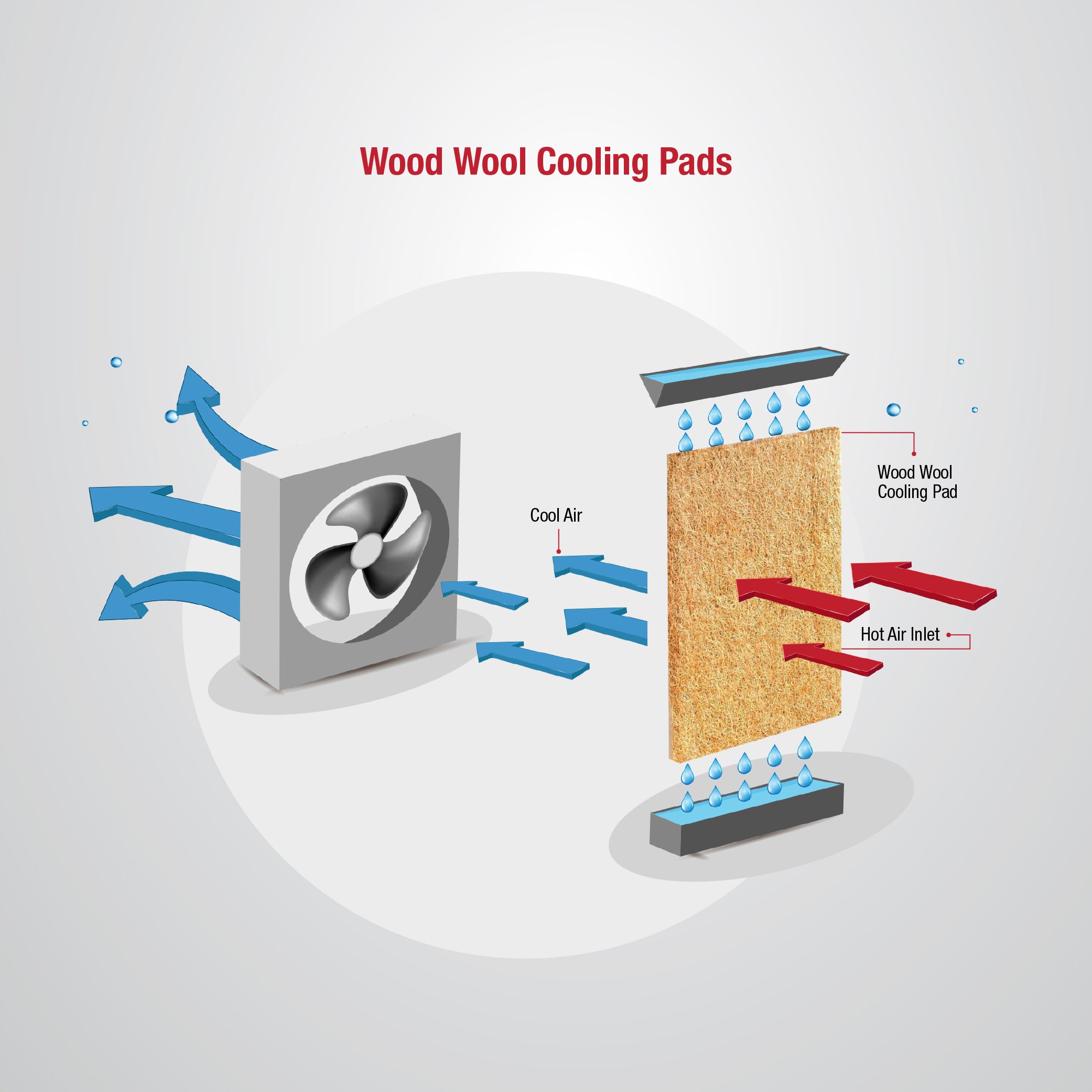 - Comes with three-side wood wool cooling pads, enhancing water retention for improved and long-lasting cooling.
