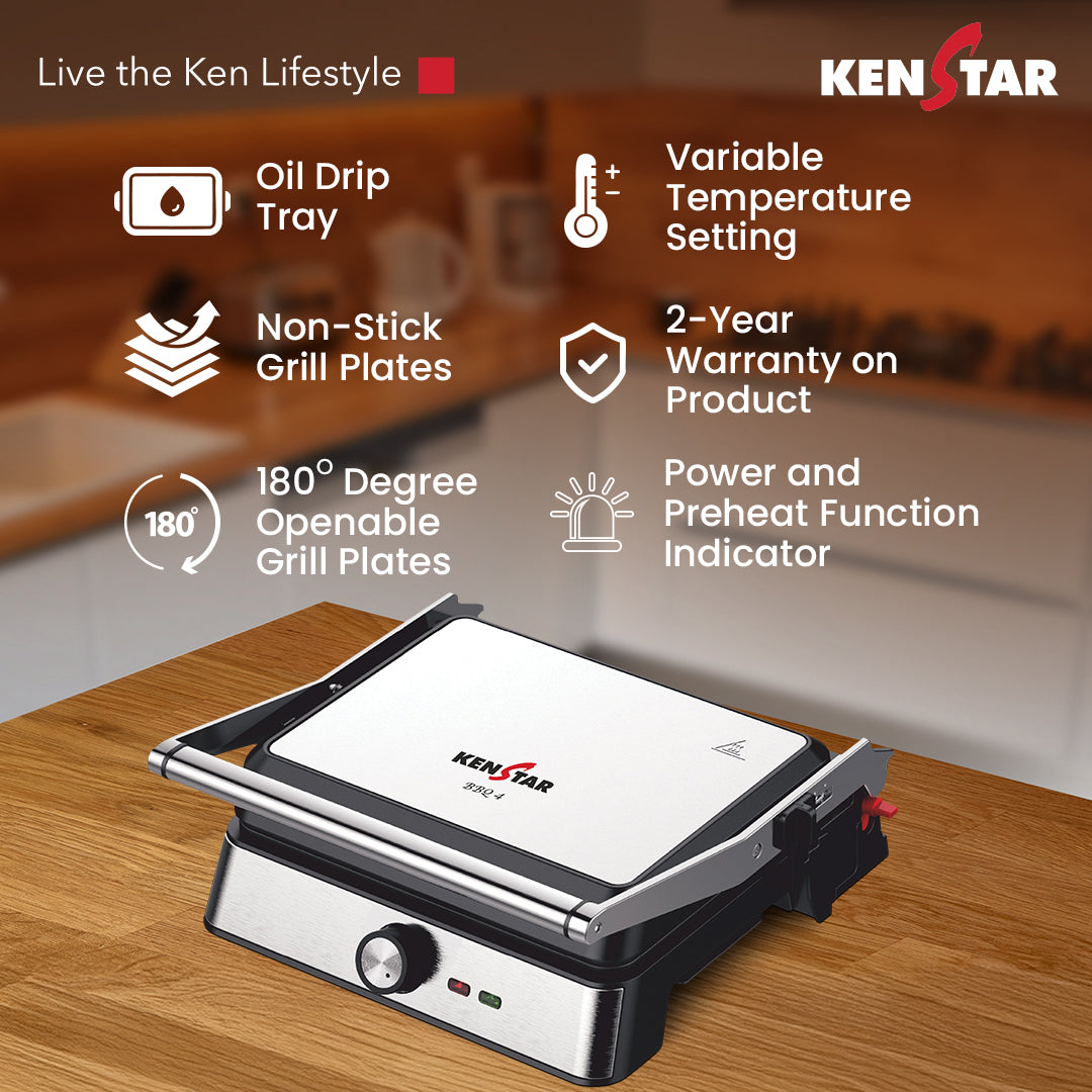 | Design | Plates open flat to 180° for grilling larger items or using as a griddle |