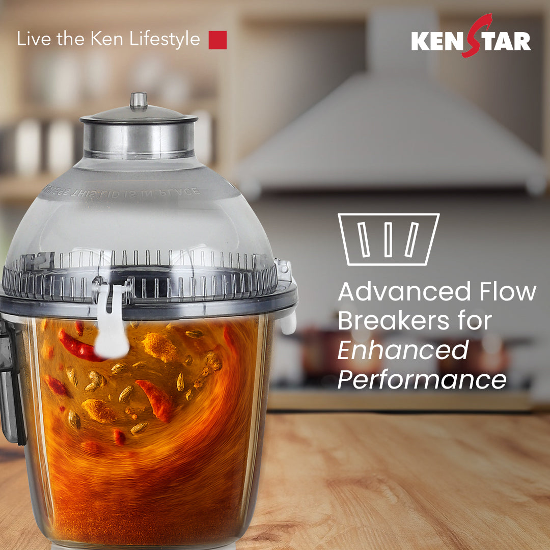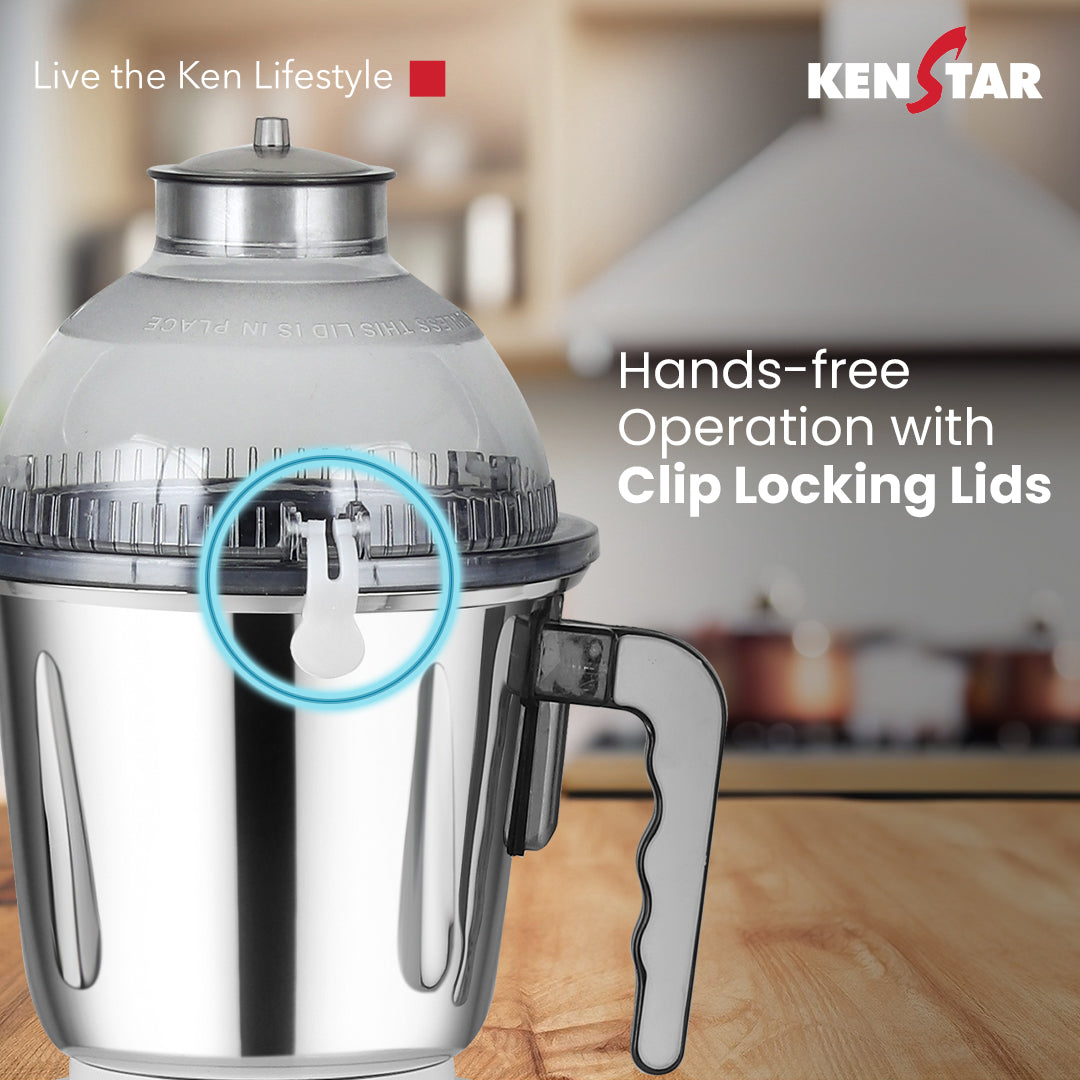 - Versatile Jars: Comes with a set of three stainless steel jars – 1.25L liquidiser, 0,8L dry grinder, and 0.4L chutney jar, all designed with clip-locking lids and ergonomic handles for added convenience and safety.