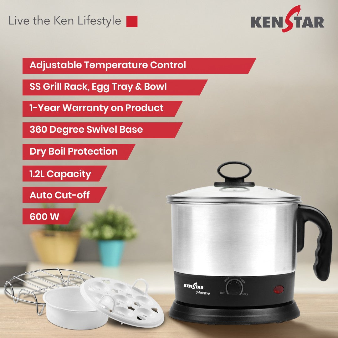 | Material Description | KEN,EK,Maestro 1.2L Multicook Kettle, SS Grill Rack, Egg Tray & Bowl,KKMAS12V60SR1 |