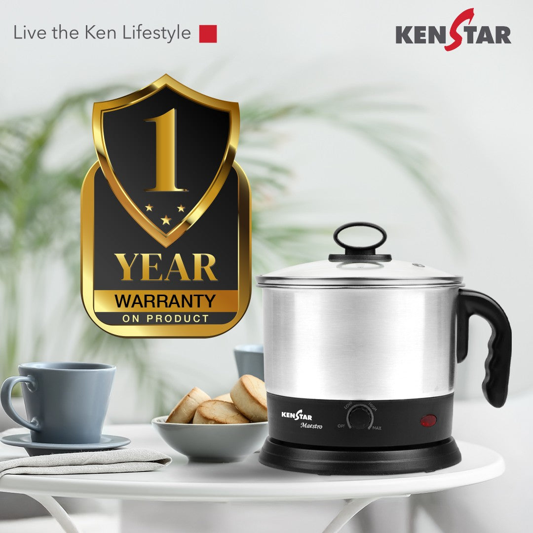 The Maestro 1.2L Multicook Kettle is designed for everyday convenience and efficiency, powered by a reliable 600W motor for quick heating. With a 1.2-litre capacity, it’s perfect for families and versatile daily use—be it boiling water, preparing instant noodles, or making tea. The 360-degree swivel base allows for easy handling from any angle, while the auto cut-off function and dry boil protection ensure safety by preventing overheating or operation without water. Built for performance and peace of mind, the Maestro kettle is backed by a 1-year warranty, making it a dependable addition to your kitchen.