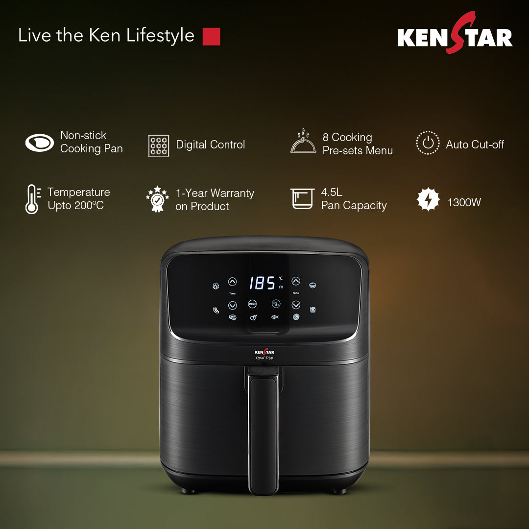 This versatile appliance features a powerful 1300W heating element and a spacious 4.5L pan capacity, perfect for a variety of cooking needs. Its non-stick interior ensures effortless cleaning, while the digital control allows for precise temperature adjustments up to 200ºC. With 8 cooking presets, it simplifies meal preparation for various dishes. The non-stick cooking pan enhances convenience and ease, and the auto cut-off feature adds safety by preventing overheating. Plus, it comes with a 1-year warranty on the product, providing peace of mind and reliable performance.