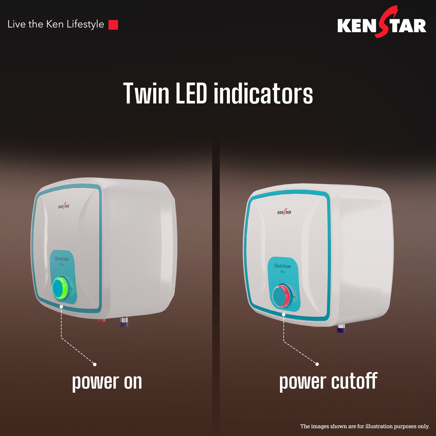 - Twin Indicators – Separate heating and power indicators keep you informed about the heater’s operation at a glance.